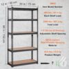 • Customizable Assembly: Adjustable racks allow users to tailor shelf height across all five tiers, boosting flexibility for warehouse shelving or as a pantry rack.