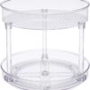- Two tier turntable: The dual-layer rotating design makes this model perfect for vertically stacking spice bottles, jars, or as a condiment holder in any cabinet or fridge.