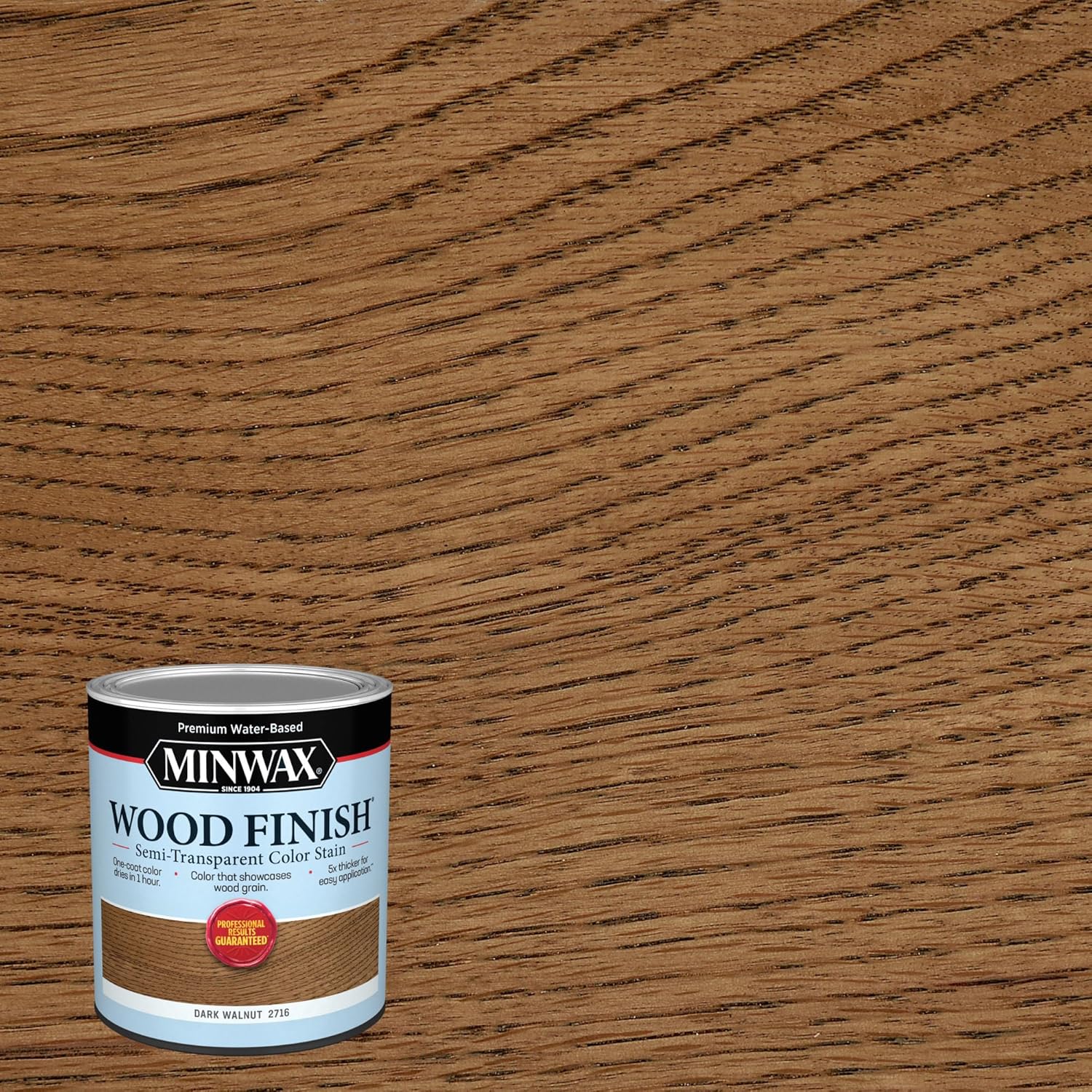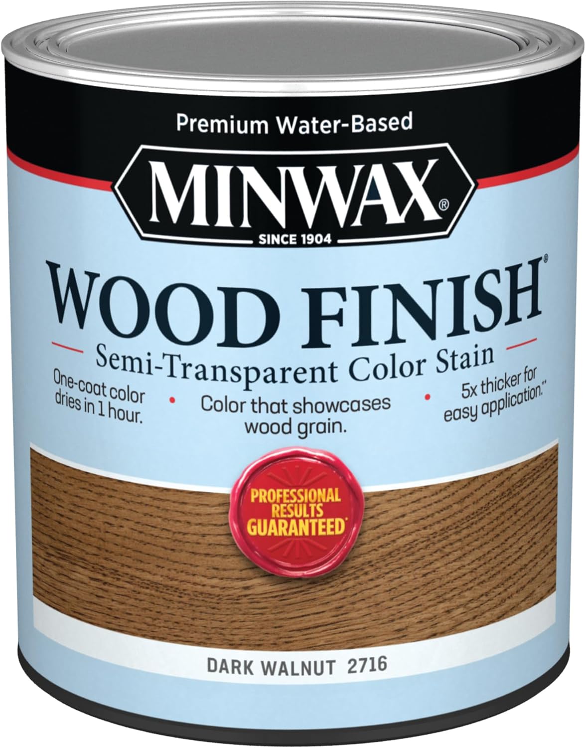 Enhance your woodworking projects with the Minwax® Wood Finish® Water-Based Semi-Transparent Color Stain in Dark Walnut. This easy-to-use quart formula features a one-coat color that dries in just 1 hour, while its 5x thicker consistency ensures smoother, hassle-free application. The semi-transparent stain beautifully showcases the natural wood grain, adding richness and depth to any surface. Upgrade your finishing results with this trusted product from the Minwax Store.