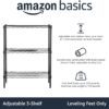 The Amazon Basics 3-Shelf Adjustable Heavy Duty Steel Wire Rack is a versatile storage solution designed for maximum convenience and durability. With a sturdy steel construction supporting up to 750 pounds, each shelf is adjustable in 1-inch increments for customized organization in your kitchen, garage, or any workspace. Easy tool-free assembly and a sleek black finish make this shelving unit both practical and stylish—a must-have for anyone looking to maximize space and easily access their items.