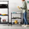 The device is compact but mighty, supporting heavy-duty loads up to 750 lbs overall. Its adjustable shelf positions cater to everything from tool storage in your shed to pantry items in your kitchen. Plus, its sleek black metal rack finish ensures it looks good anywhere.